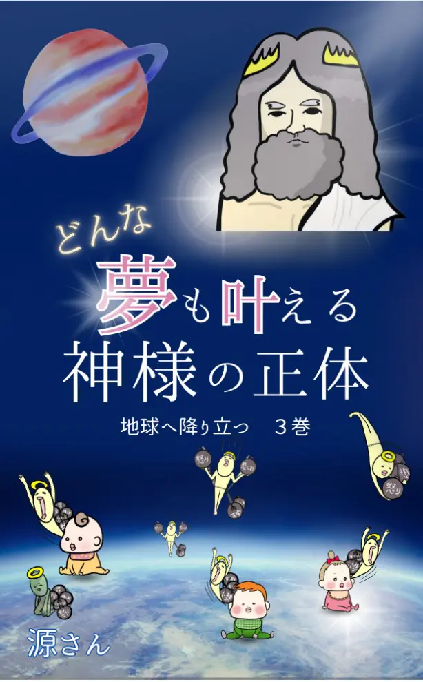 本作は、神吉(かみきち)がワンネス星から地球に降り立ち、悩みや問題を体験しながら魂が成長していく物語。1巻では「この世の仕組み」、2巻では「オモリの外し方=目醒めの法則」、3巻では「地球での実践編」を学びます。